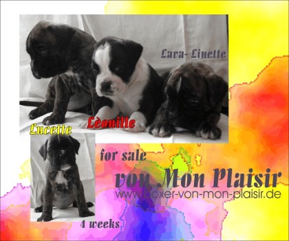 Am 5. Juli sind im L-Wurf drei gestromte Boxermädchen nach Waterloo Nostrum & Hope vom Schwaneneschloss zur Welt gekommen.